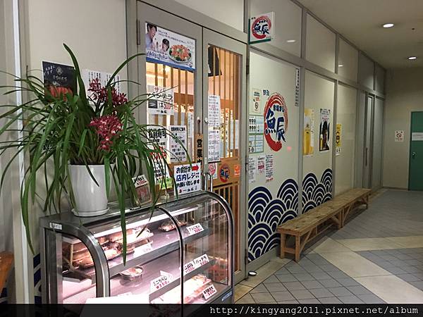 來到長浜海鮮市場就一定要吃新鮮海鮮海鮮種類及商家料理的方式很多魚辰這個商家是這裡唯一的迴轉壽司店店面就在會館大樓入口處左邊